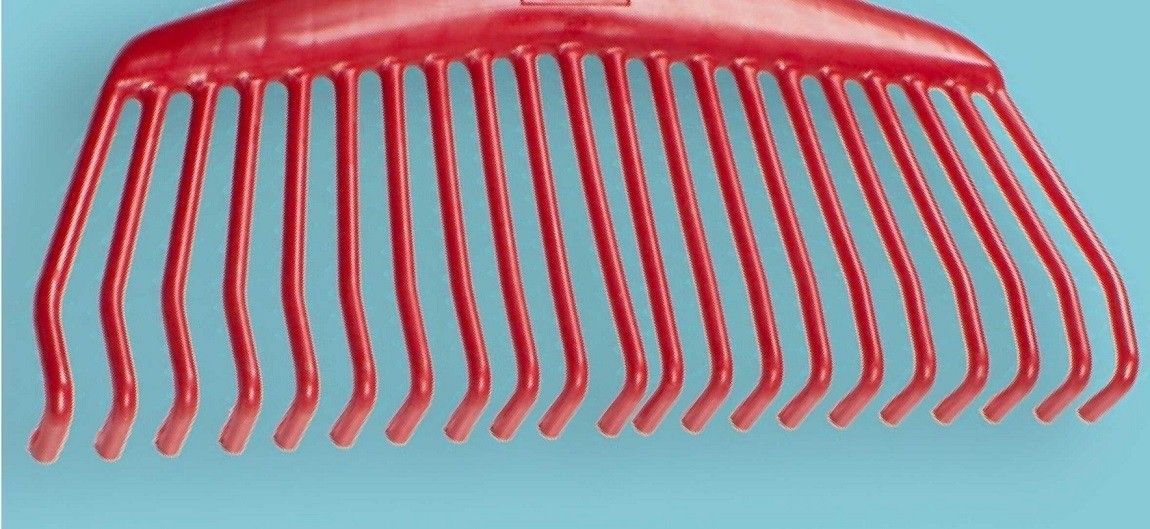 De hark is gemaakt van sterk en duurzaam kunststof, heeft veerkrachtige tanden en gaat lang mee.