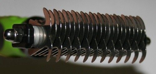 De grove zijde is voorzien van 12 messen en de fijnere kant met 23 messen.