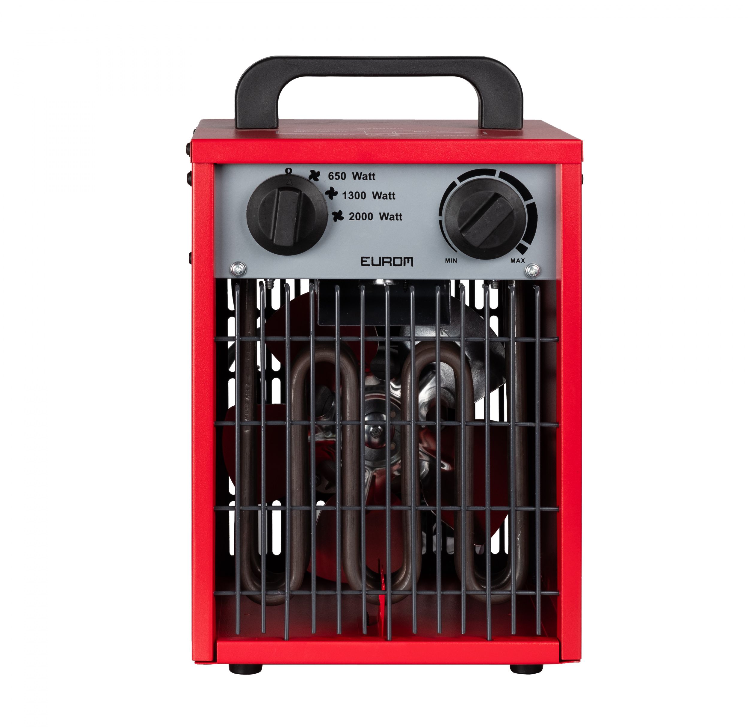 De Eurom EK2001 is een elektrische ventilatorkachel voor gebruik in werkplaats, schuur en garage. Door het vermogen van 2000 Watt is de ruimte binnen een mum van tijd heerlijk op temperatuur. De kachel is instelbaar op 3 vermogen niveaus. Daarnaast beschikt de EK2001 over een koude-lucht ventilator, thermostaat en is spatwaterdicht. Ook heeft deze kachel een metalen behuizing en is veilig in gebruik door de oververhittingsbeveiliging.