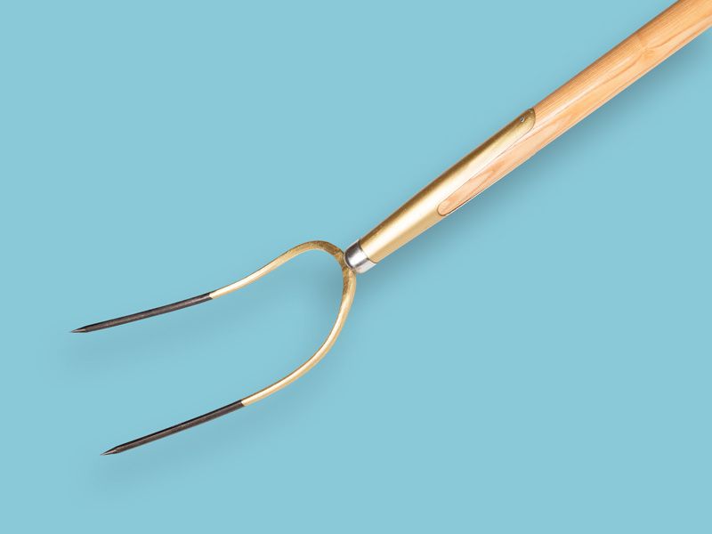 Hooivork Offner brons 2 tands met 150cm essen knopsteel