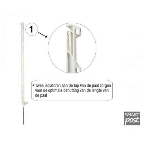 paal is praktisch onbreekbaar waardoor deze kunststofpaal een zeer lange levensduur heeft. De paal is voorzien van genummerde ogen voor gemakkelijk inleggen van lint, koord of draad.