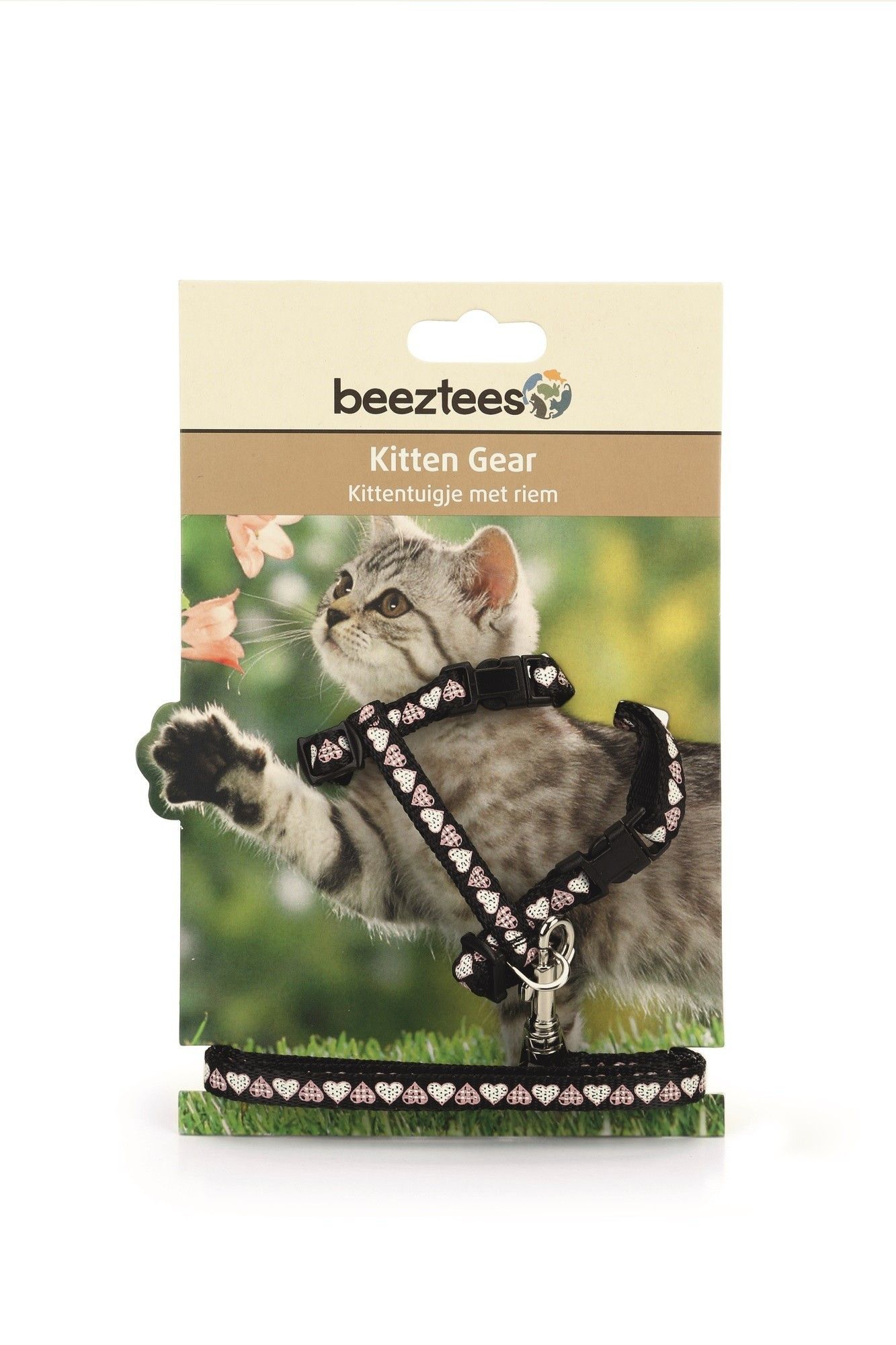 Kittentuigje Hearts zwart met 120cm looplijn Beeztees