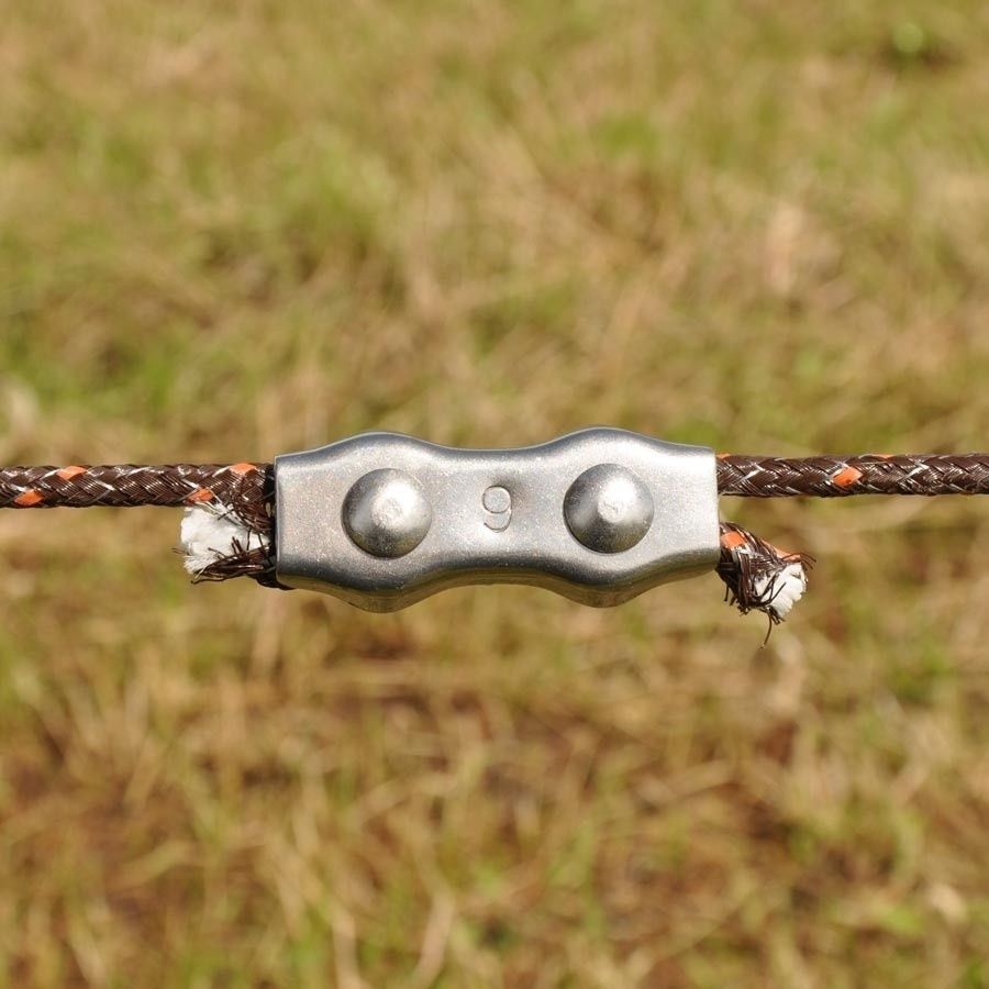 Met deze Gallagher koordverbinder kun je op een gemakkelijke manier 2 stukken schrikkoord aan elkaar verbinden. Door deze koordverbinder te gebruiken voorkom je storingen en stroomverlies op de afrastering. Maak je een verbinding van 2 stukken koord door middel van een knoop dan ontstaat er vonkvorming (kortsluiting) in de knoop. Op den duur zal de afrastering op dit punt doorbranden waardoor de stroom onderbroken wordt. De Gallagher koordverbinder is gemaakt van RVS (roestvrijstaal) waardoor het niet roest en daardoor zeer lang mee gaat.