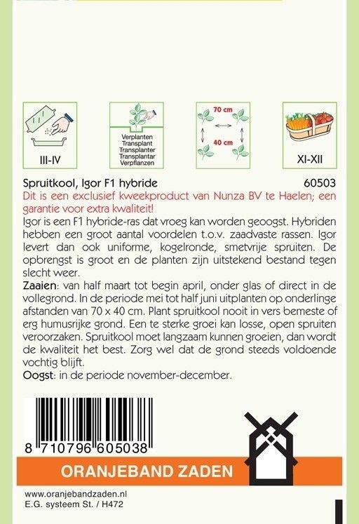 Zaden Spruitkool Igor F1 Hybride. Dit zaad is geteeld, geschoond en gecontroleerd door Nunhems zaden. 'Igor' is een exclusief Nunhems kwaliteitsproduct.