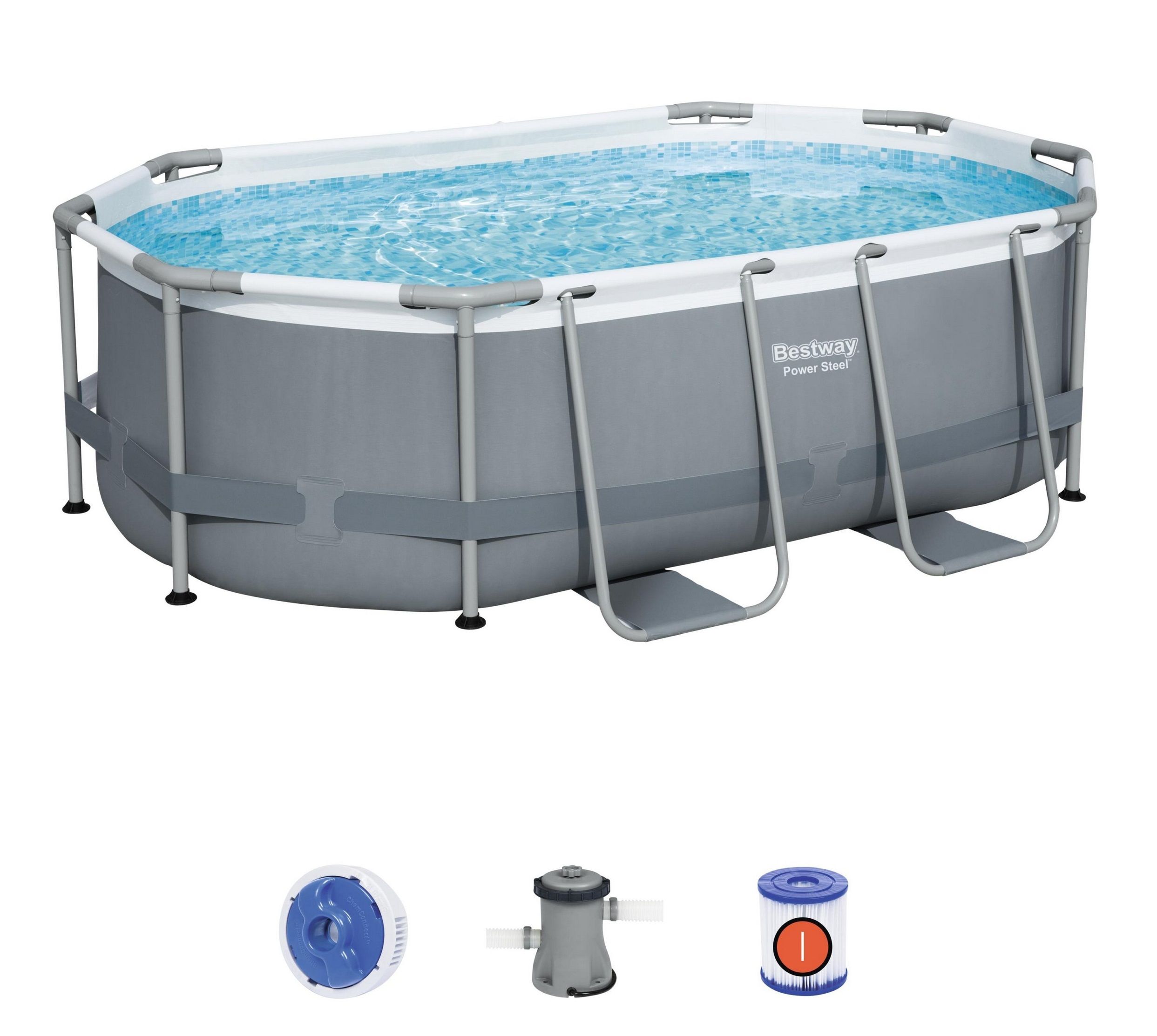 Dit Power Steel zwembad van Bestway is een stevig en duurzaam zwembad. Het zwembad heeft een corrosie bestendigstalen frame wat bestaat uit een Seal & Lock systeem voor een veilige en stevige buisverbinding. De liner is gemaakt van DuraPlus materiaal en 2 lagen PVC met een kern van polyester gaas, wat zorgt voor extra stevigheid en duurzaamheid. Het zwembad is voorzien van een leegloopventiel met tuinslangaansluiting zodat het zwembad eenvoudig geleegd kan worden. Het Power Steel zwembad is zeer eenvoudig op te zetten. Het zwembad wordt geleverd inclusief pomp, chemconnect dispenser en reparatie patch.